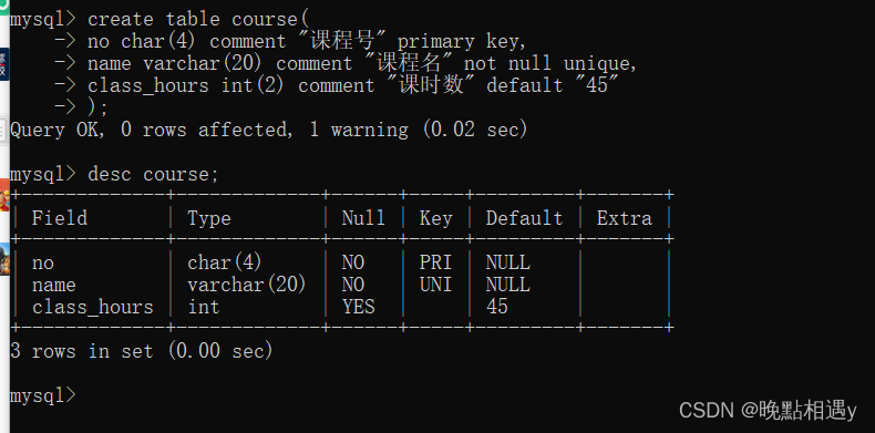 3.创建课程表course: