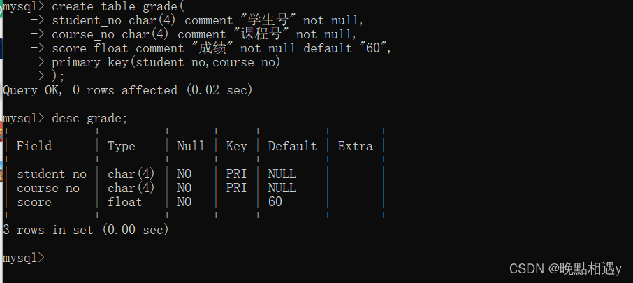 5.创建成绩表grade: