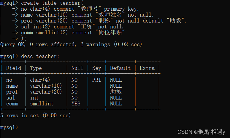 1.创建教师表tercher: