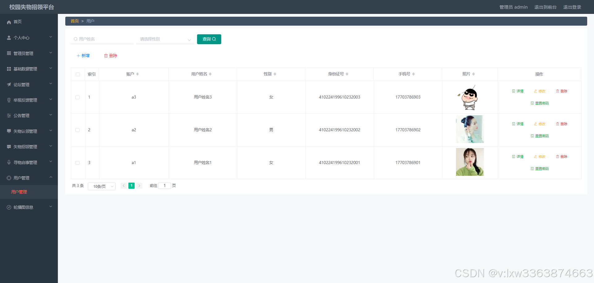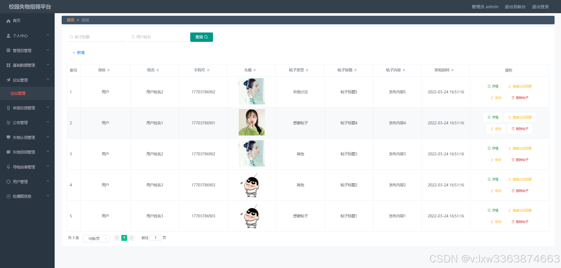 第5章:实现校园失物招领平台的功能并进行功能界面展示。