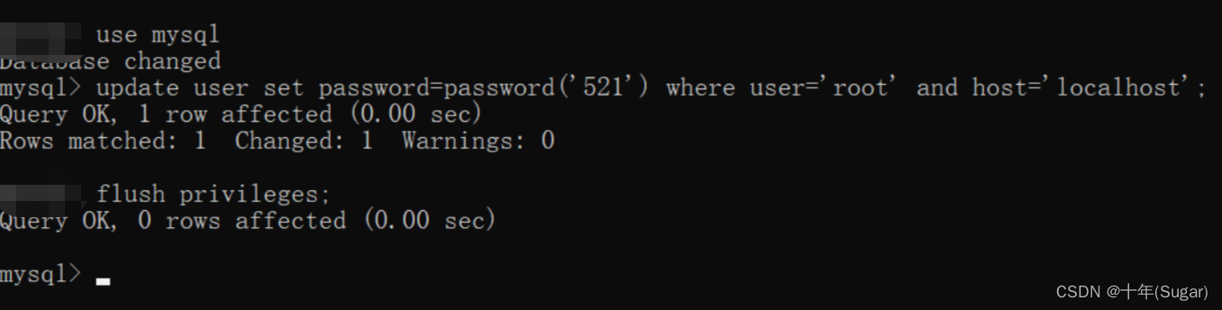 update user set password=password('521') where user='root' and host='localhost'; # 改密码