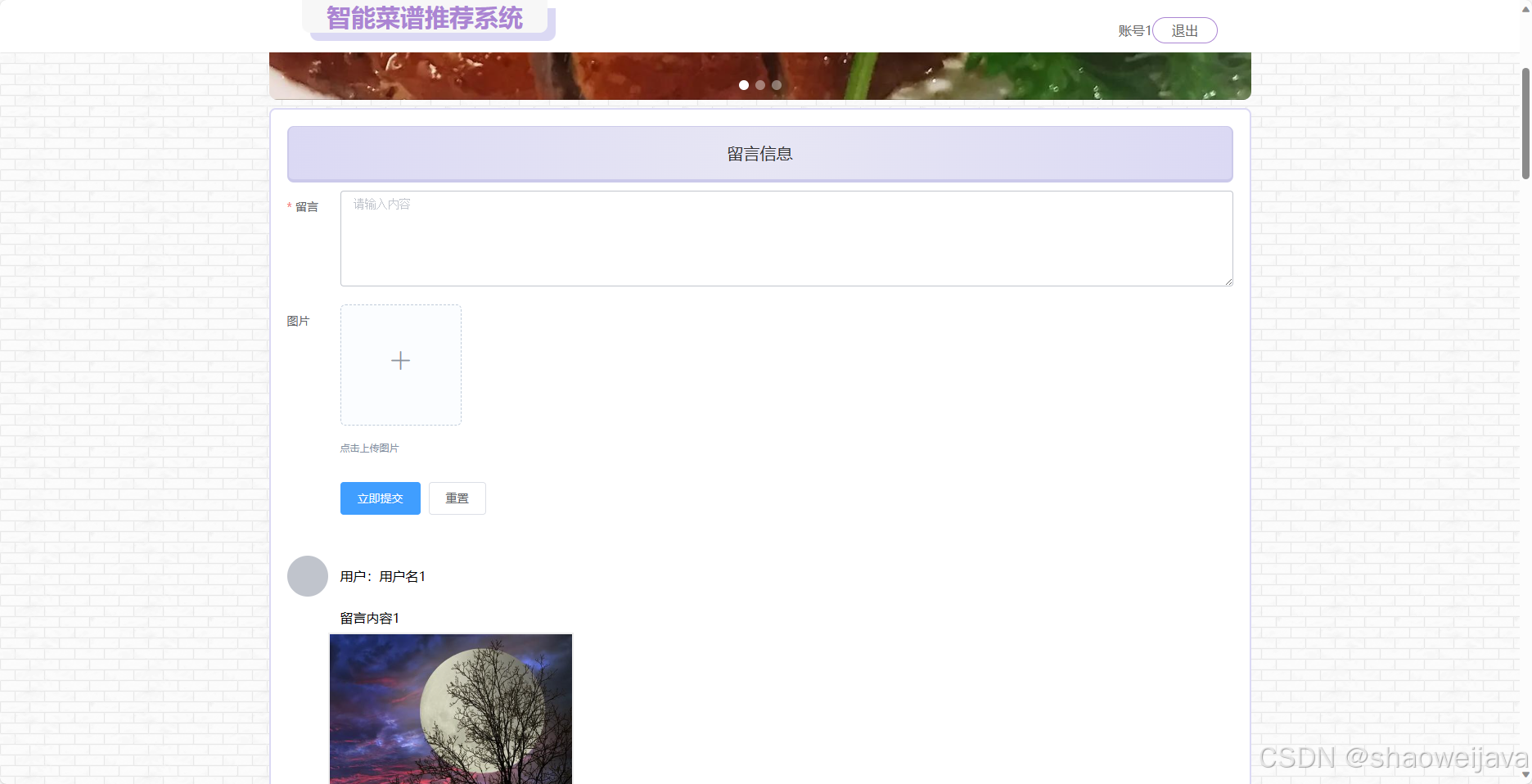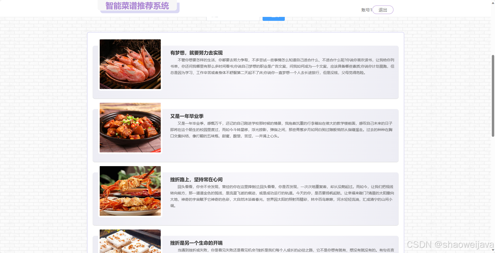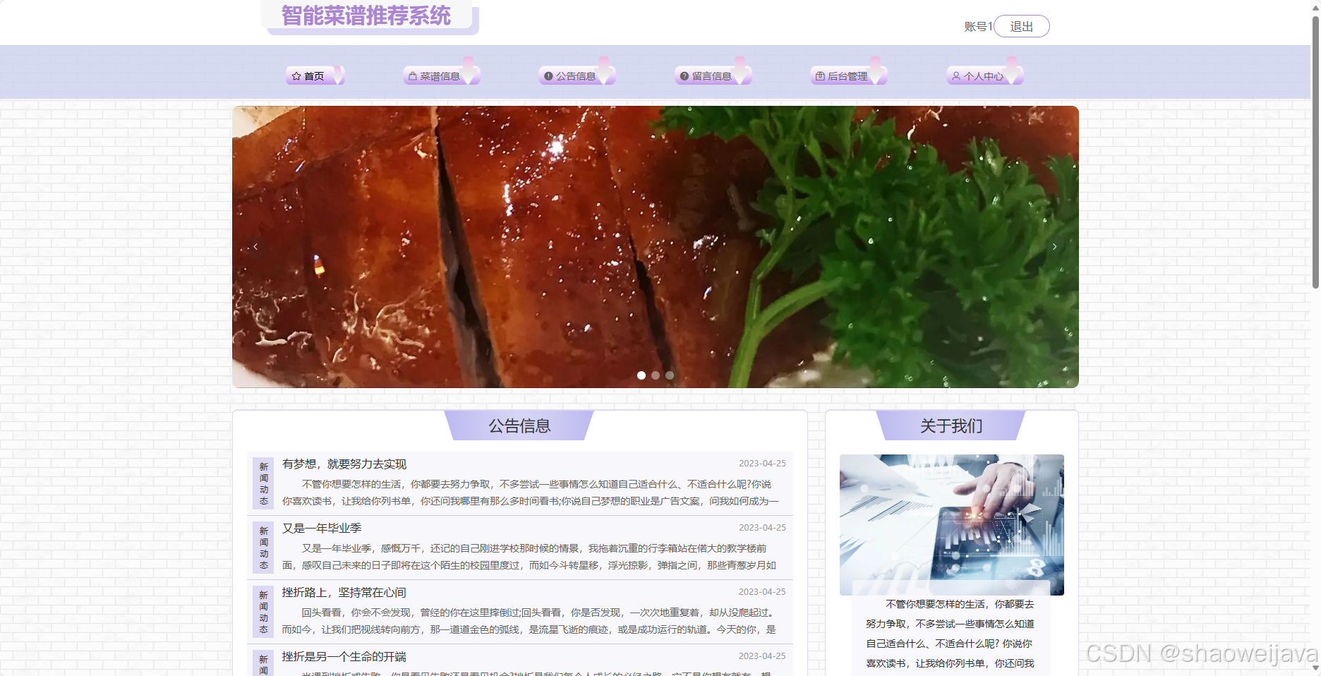 - 首页:展示平台的最新动态、推荐菜谱等内容。