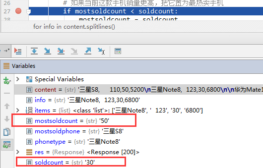 这就是问题所在:我们忘了把字符串转为整数类型了,导致比较销量大小的时候出现了问题。