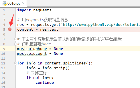 Pycharm要设置断点非常简单,在要设置断点的代码左边边框上,也就是上图的箭头指向的地方,点击一下鼠标就可以了。