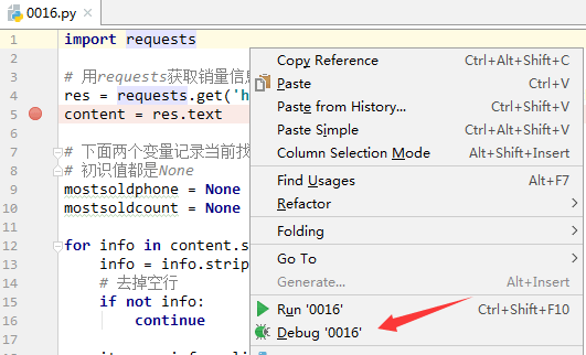 Pycharm最常用的方法就是 使用IDE的调试功能, 在关键代码处 设置断点, 查看关键变量的值。