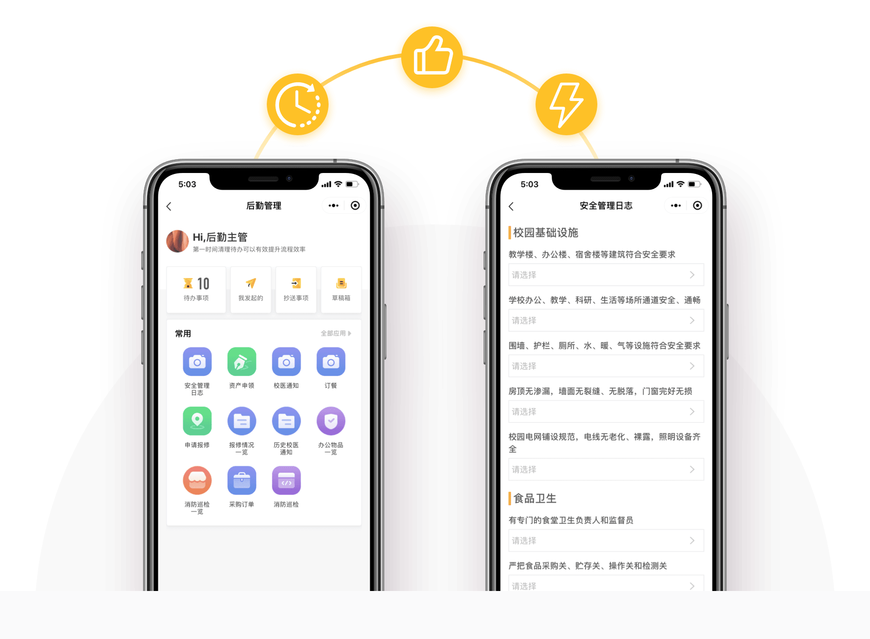 宿舍设备管理种类多,维修巡检多要花大量的时间。通过设备巡检系统,实现信息化管理设备,简单扫描二维码即可查询设备历史信息,详细掌握设备生命周期。定期的设备维护不仅是保障宿舍水、电、消防等基础设施的正常运转,更是对学生安全的保障和负责。