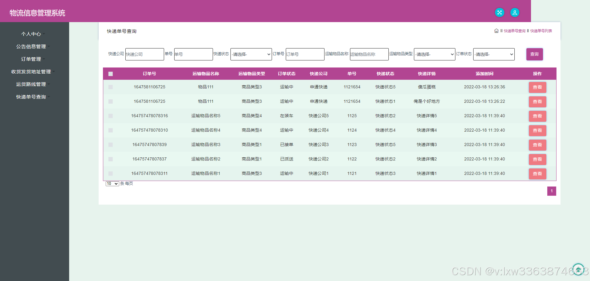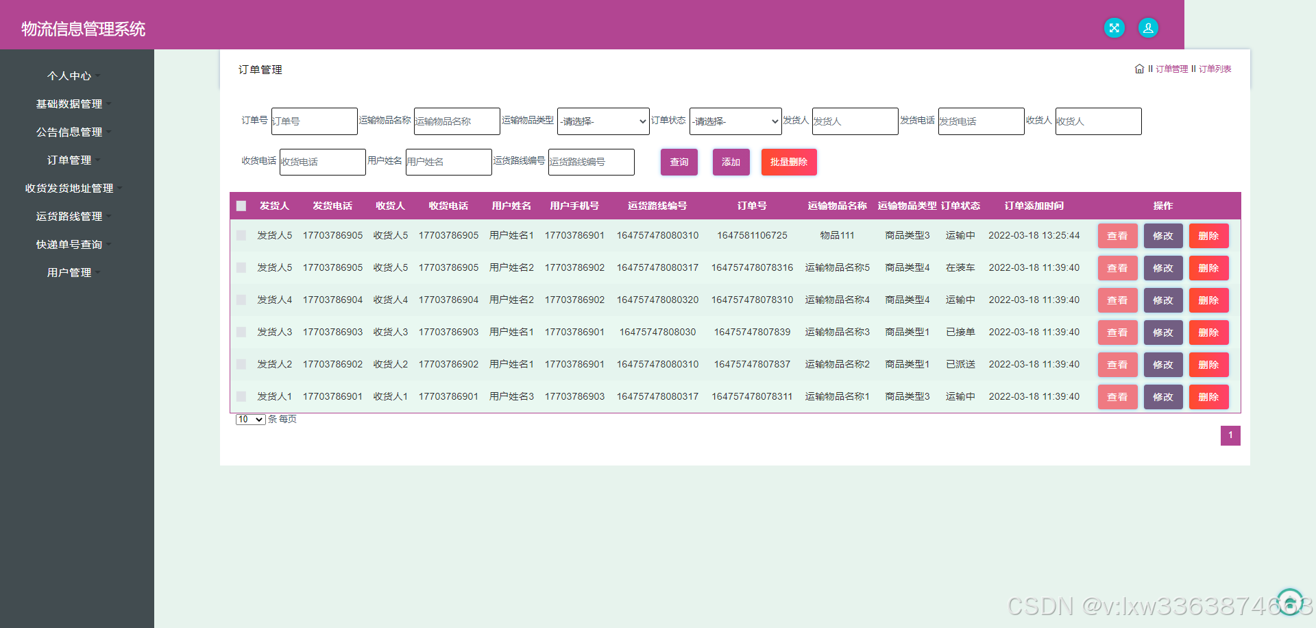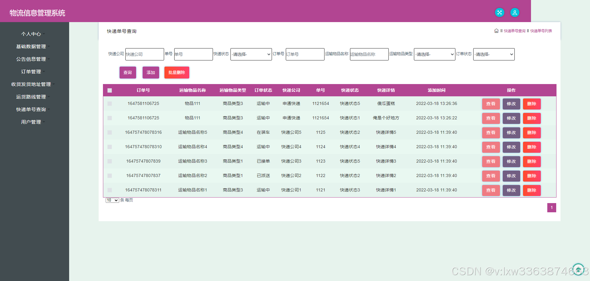 物流信息管理系统的设计与实现(Java+Mysql+SSM+论文+系统源码+数据库+调试)