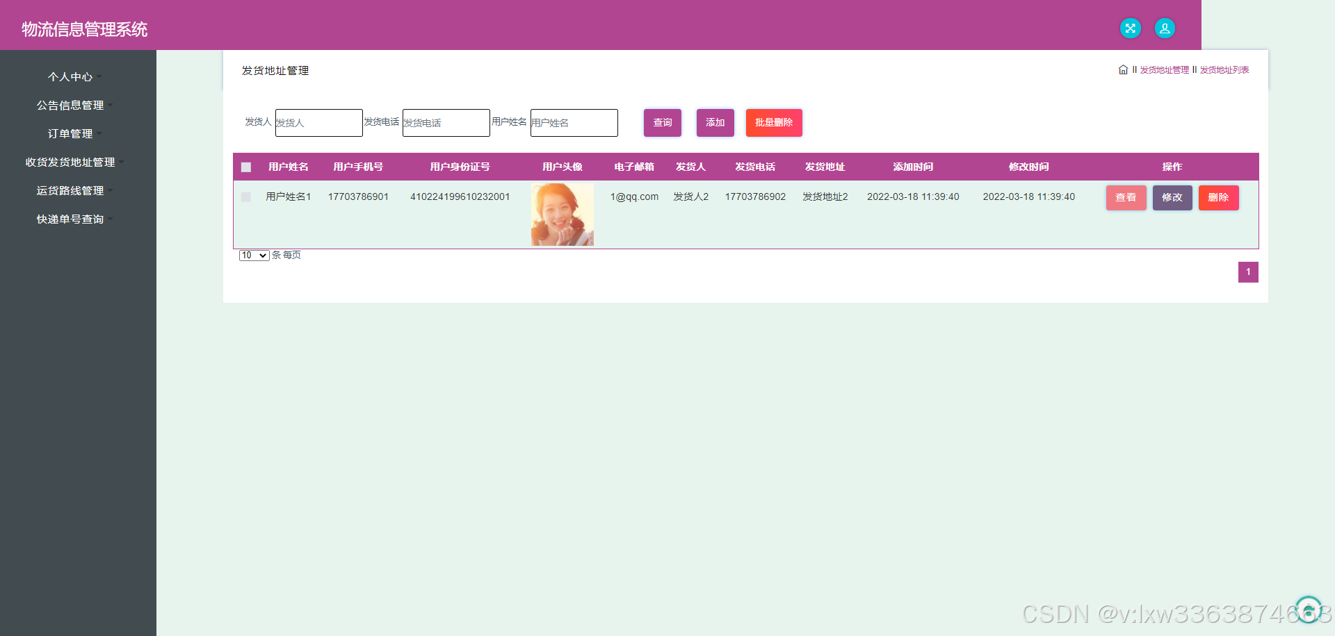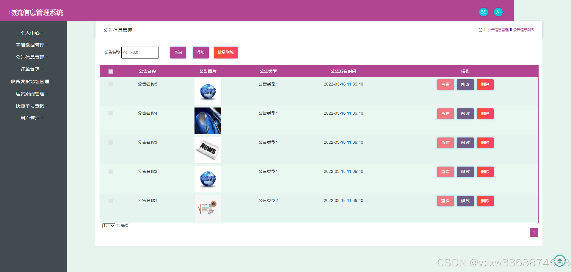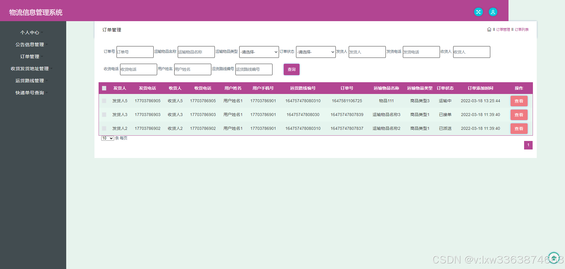 物流信息管理系统的设计与实现(Java+Mysql+SSM+论文+系统源码+数据库+调试)