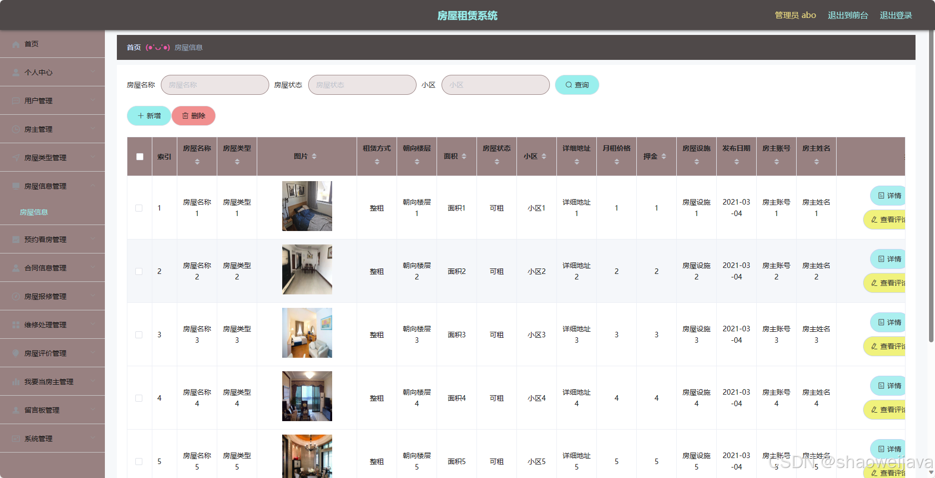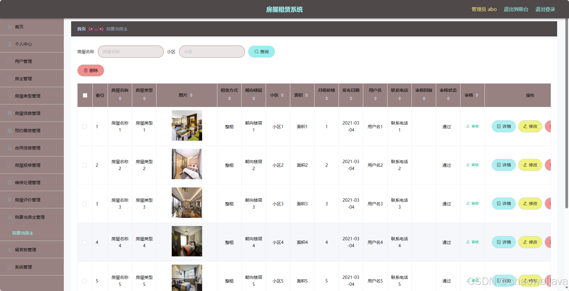 - 房主管理:管理员可以管理系统的房主账号,包括添加、编辑和删除房主。