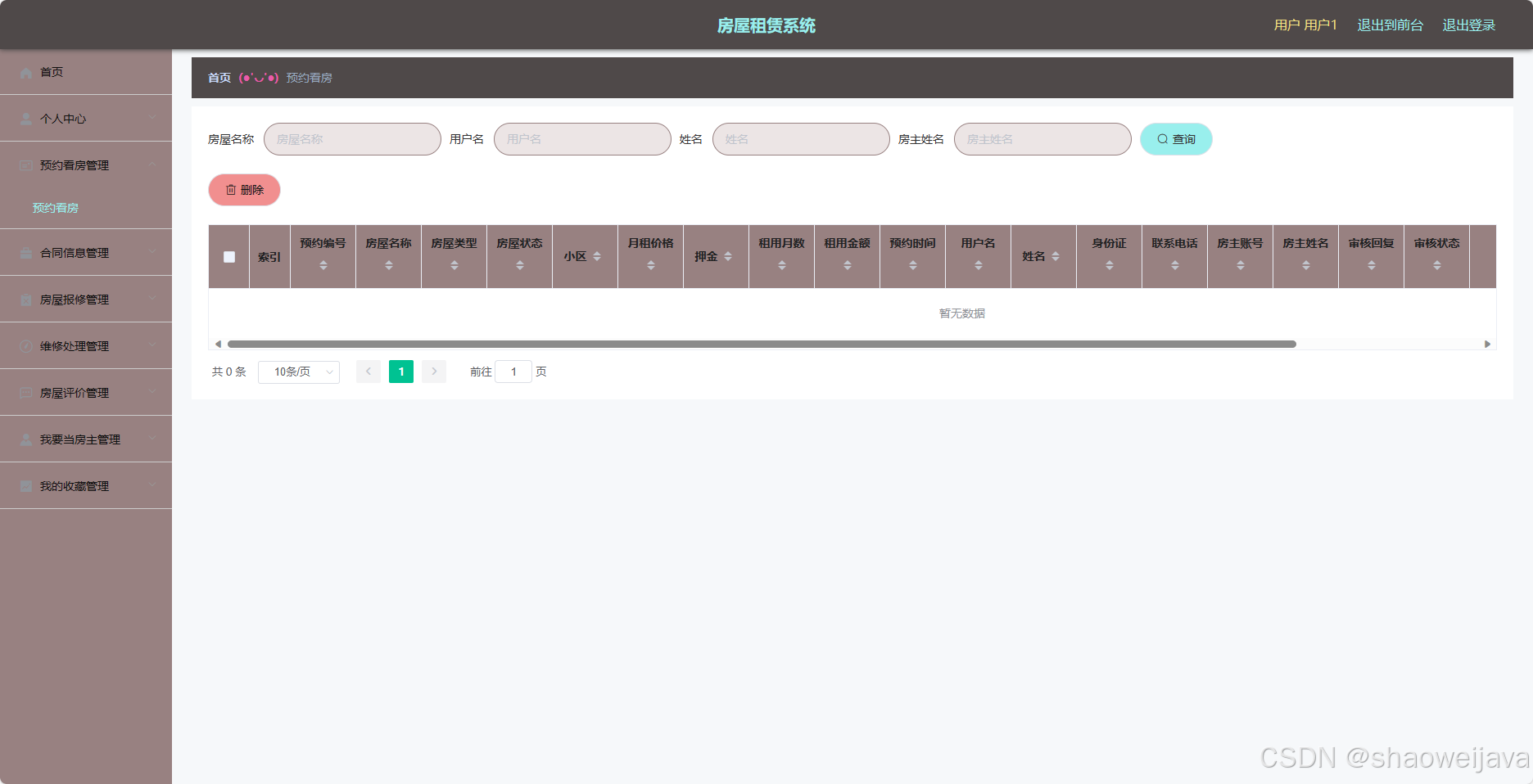 基于SpringBoot的房屋租赁系统,系统包含两种角色:管理员、用户,系统分为前台和后台两大模块