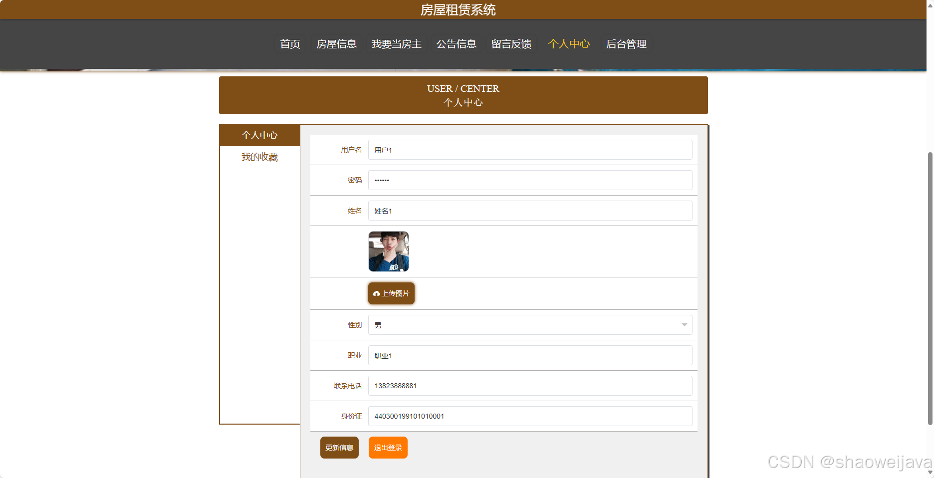 - 个人中心:房主可以查看和编辑个人信息,包括修改密码等。