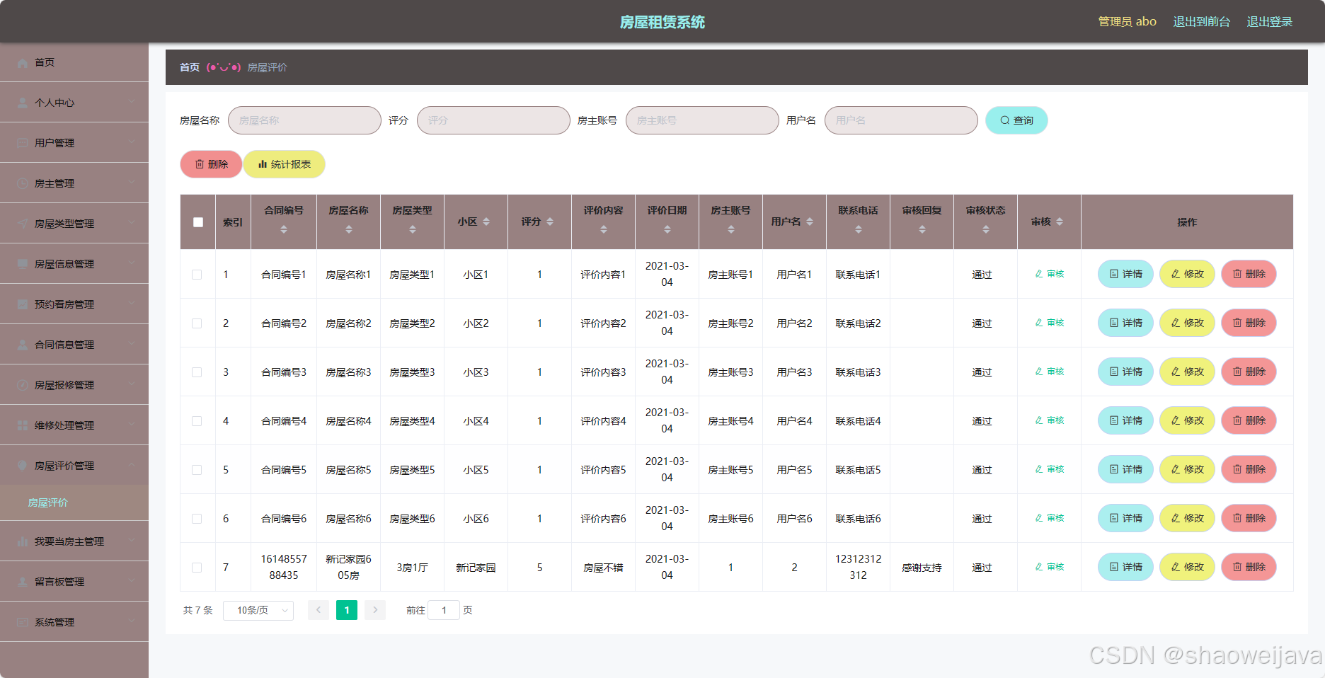 - 房屋评价管理:用户可以对租赁的房屋进行评价,包括评分、撰写评价等。