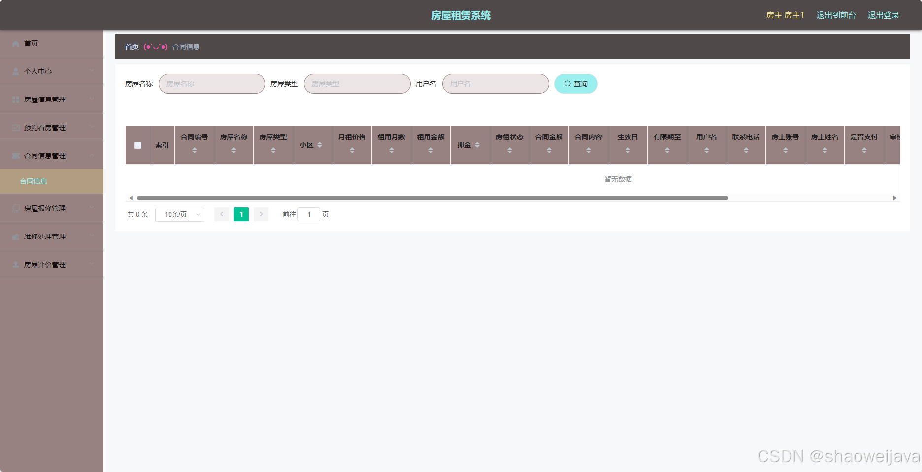 - 合同信息管理:房主可以查看和管理与用户的合同信息,包括查看合同详情、终止合同等。