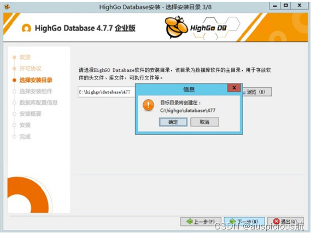 ③.该文档默认安装路径C:\highgo\database\477\,如果实际安装路径有所更改,请在该文档全。文件位置:C:\highgo\database\477\data\pg_hba.conf。安装软件之前请确保数据库安装包正确上传并解压,双击 setup.exe 开始安装。变量值:C:\highgo\database\477\data --数据库安装目录。变量值:C:\highgo\dat
