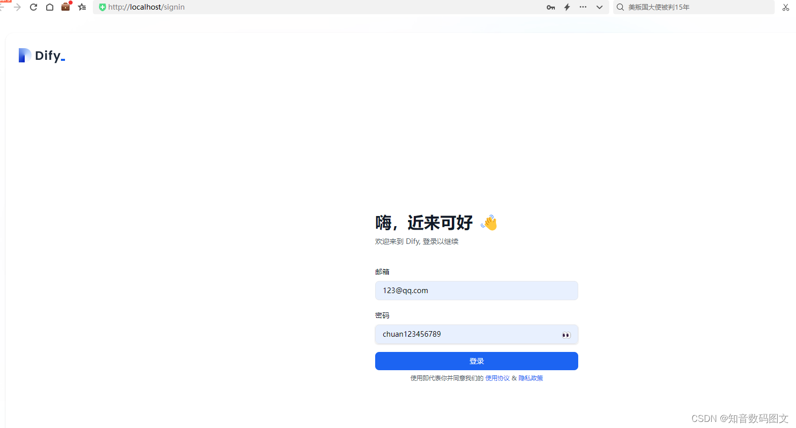 启动后,在浏览器输入 http://localhost:80 即可访问dify
