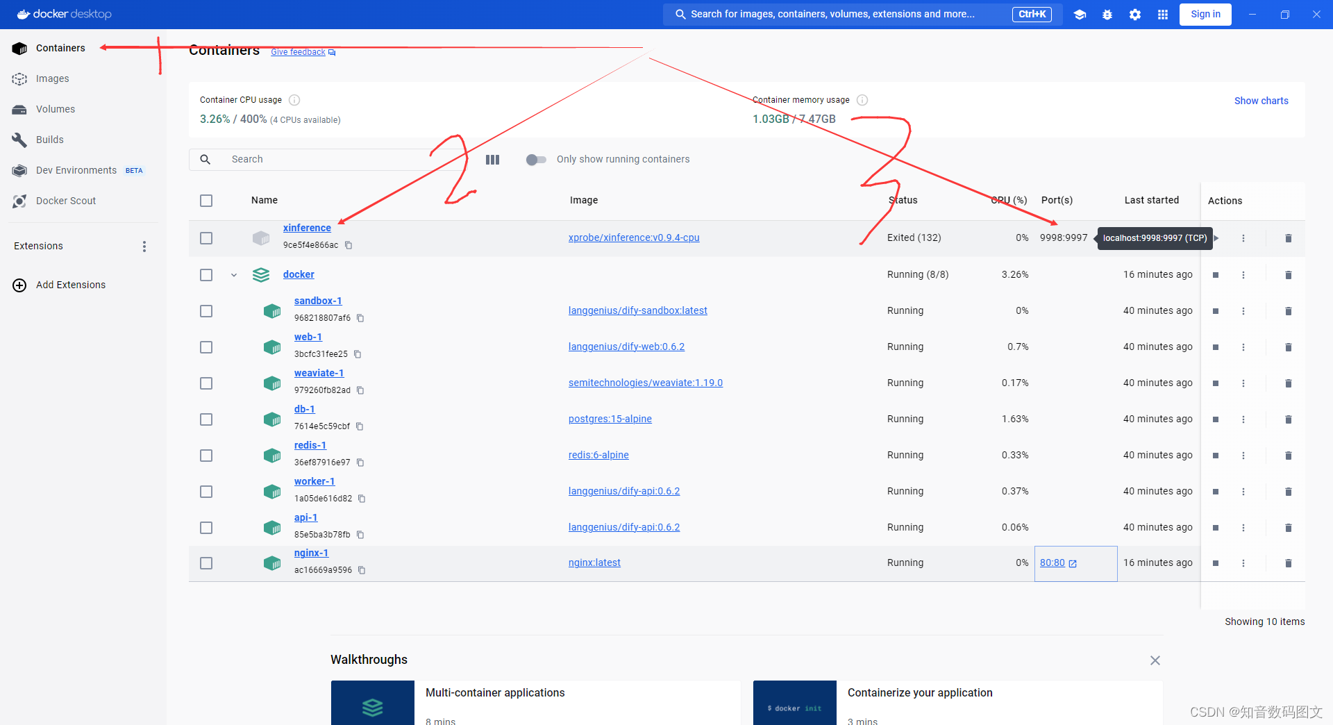 启动后,在浏览器输入 http://localhost:80 即可访问dify。进入 dify 源代码的 docker 目录,进入cd docker 查看目录ls。我已经进入docker目录。