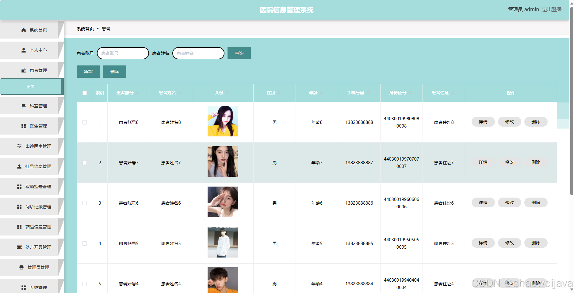 - 患者管理:管理员可以管理患者的信息,包括添加、编辑和删除患者信息。