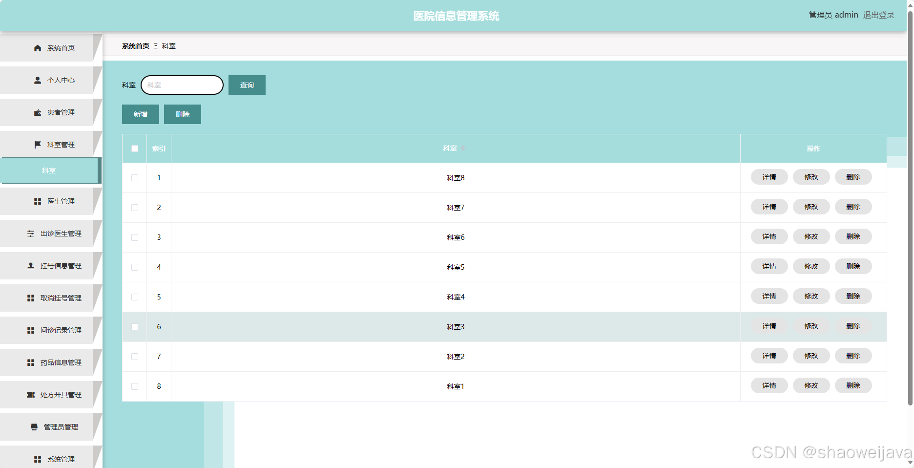 - 科室管理:管理员可以管理医院的科室信息,包括添加、编辑和删除科室信息。