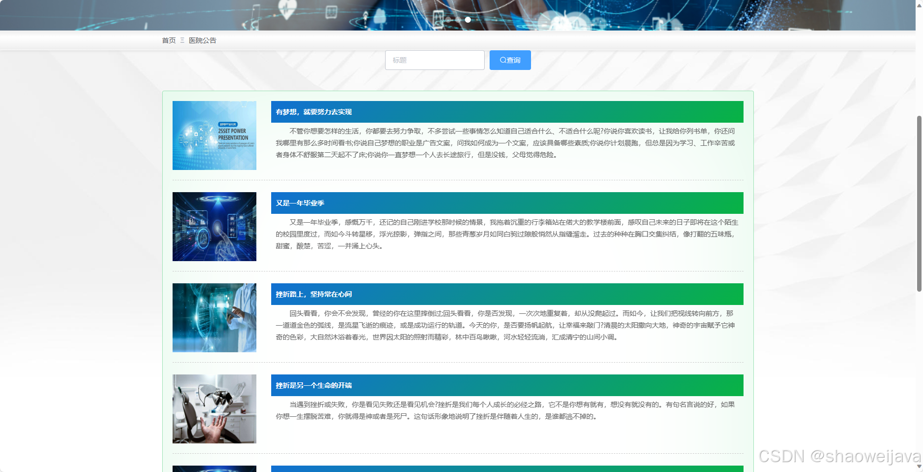 - 医院公告:展示医院发布的公告信息。