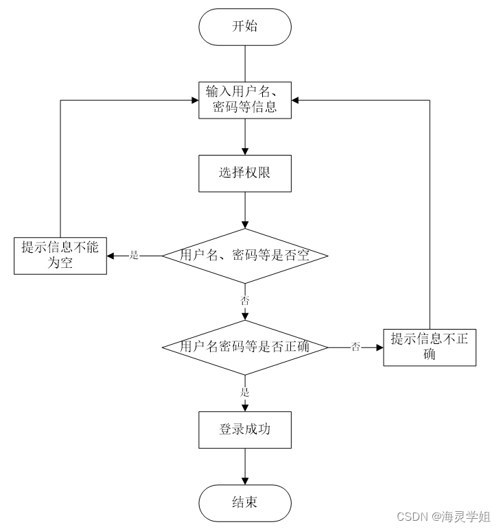 员工需要拥有属于自己的账号和密码,且必须正确,这样才能顺利登录到系统中。具体流程如下图3-1所示: