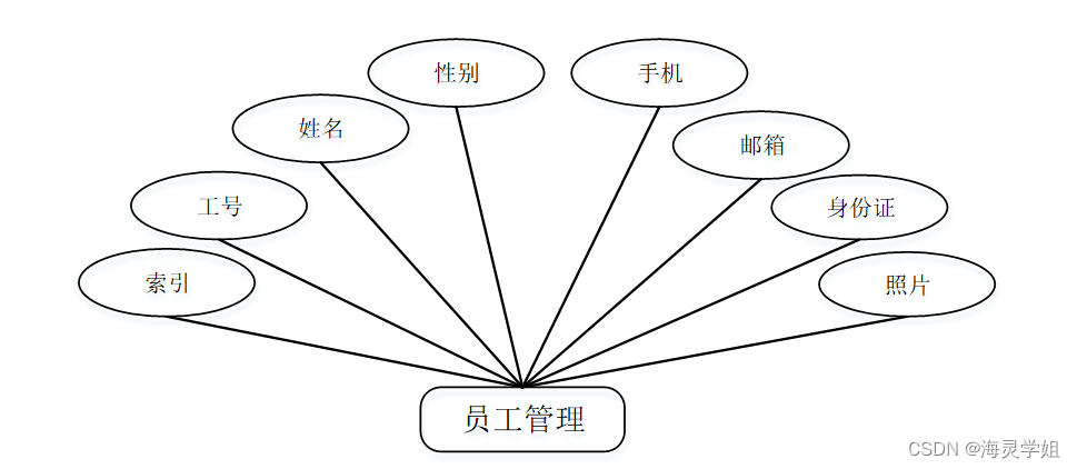 员工管理主要包括索引、工号、姓名、性别、手机、邮箱、身份证、照片等属性,员工管理属性图如图4-4所示。