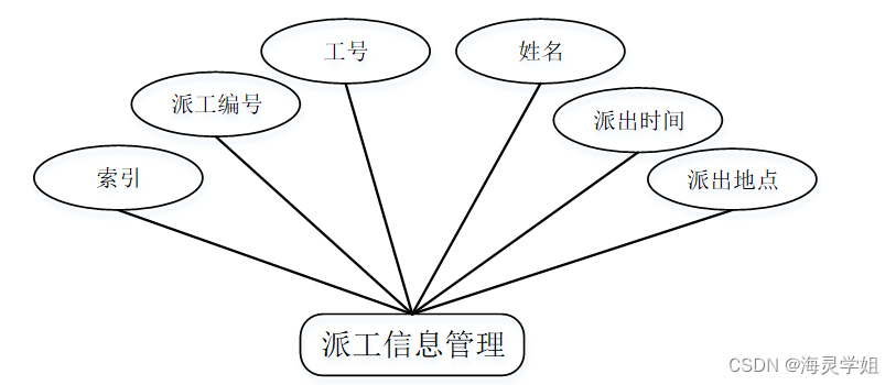 派工信息管理实体属性主要包括索引、订单编号、客户名称、客户类型、联系人、联系电话、签单日期、订单金额、定金、交付日期、合同、备注、员工工号、员工姓名等属性。派工信息管理实体属性图如图4-5所示。