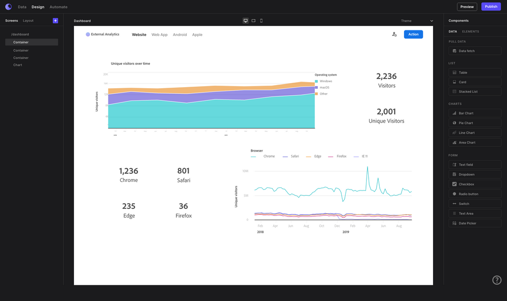 与使用计算机编程语言构建应用程序的传统方法不同,低代码开发平台是使用图形向导来创建和构建软件的应用程序开发平台。因此,在许多情况下,低代码或无代码(几乎没有代码)这个名称是作为可视化开发工具来帮助设计人员进行拖放、组件浏览器和逻辑构建器的。