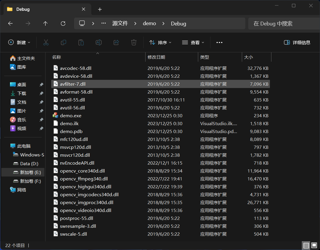 1.下载FFmpeg+OpenCV开发所用的SDK压缩包,并解压到E:\SDK下,解压后的路径应为:E:\SDK\ffmpeg-sdk\58\x86\dll及E:\SDK\opencv-sdk\340\x86\dll。