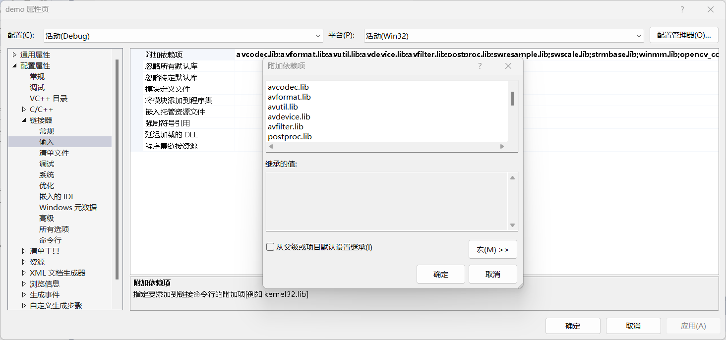 avcodec.lib;avformat.lib;avutil.lib;avdevice.lib;avfilter.lib;postproc.lib;swresample.lib;swscale.lib;strmbase.lib;winmm.lib;opencv_core340d.lib;opencv_highgui340d.lib;opencv_imgproc340d.lib;opencv_videoio340d.lib; |