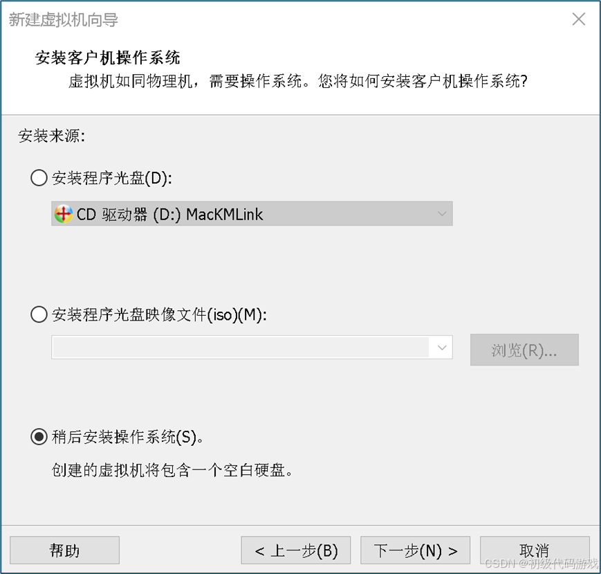 不介意安装大小可以选择安装光盘镜像,自动安装。为了最小化,需要选择“稍后安装”: