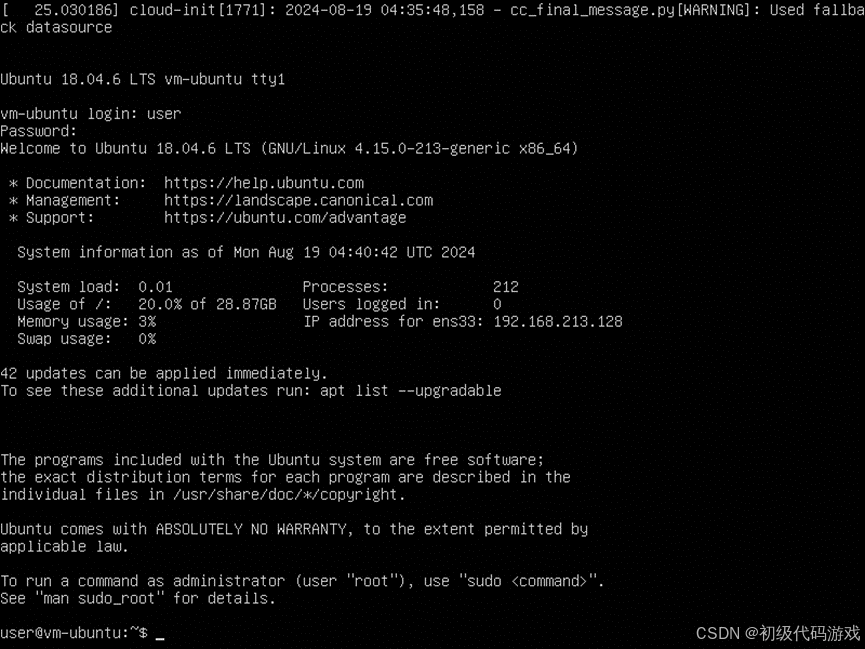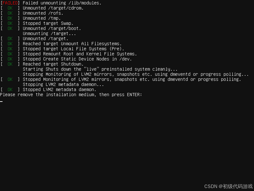 重启后进入终端,出现登录信息后还会输出一点别的信息,可以敲回车让登录提示再次出现。