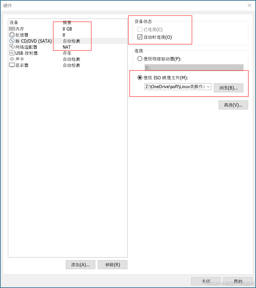 1.7 自定义硬件(同编辑虚拟机设置)