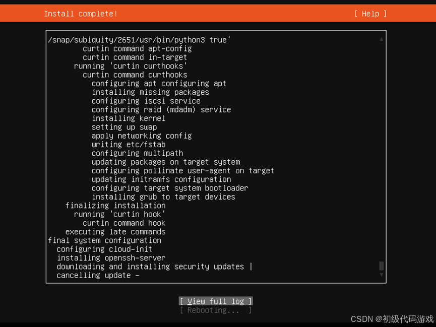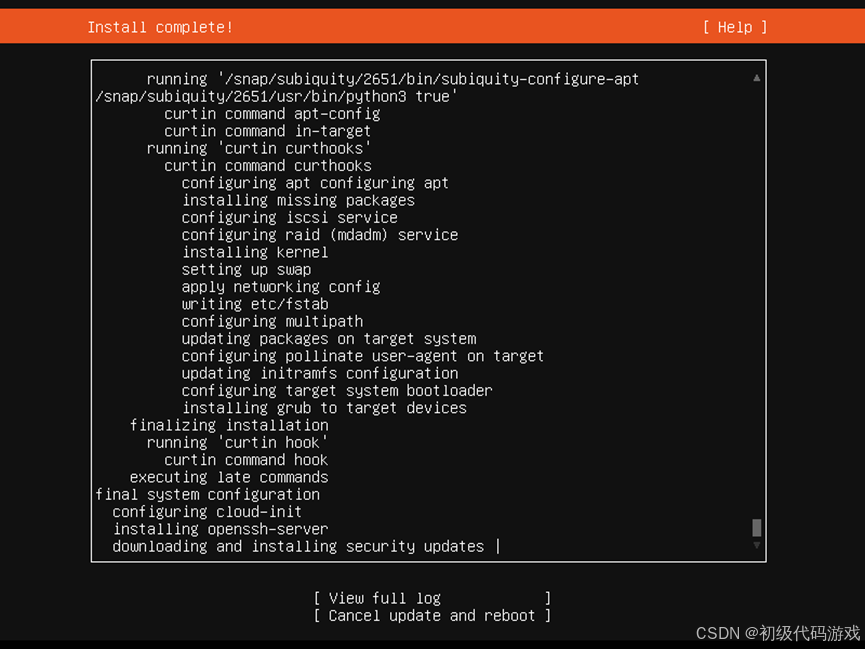 安装完成,下载安装更新(自动的,可以选择“Cancel update and reboot”):