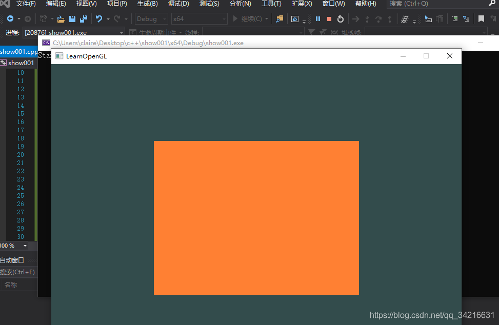⑦运行之前先检查一下是不是debug状态并且是64位,检查好了运行,如下图: