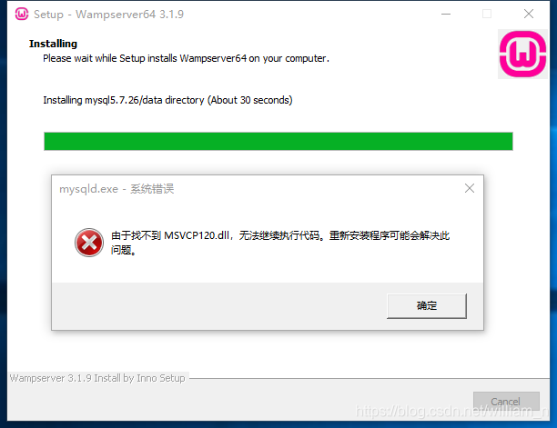 解决办法://下载安装 http://download.microsoft.com/download/b/e/8/be8a5444-cdd8-4d3d-ae09-a0979b05aee3/vcredist_x64.exe