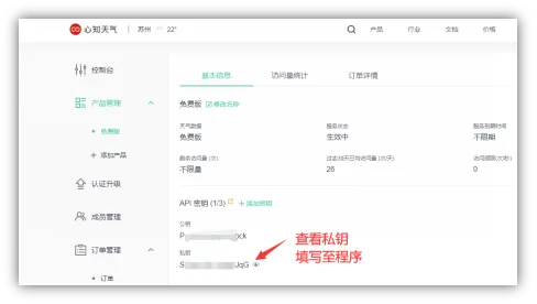 四、程序必须修改1:天气接口密钥、地区码
