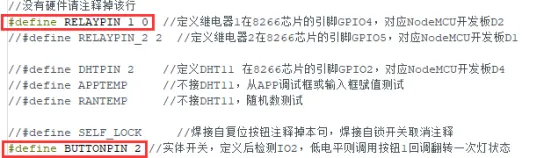 DHT11-数据存储与图表-心知天气-时间日期-运行时间-调试信息-华氏度-体感温度-继电器-引脚配置-信号强度-自动刷新-手动刷新-掉线重启-根据引脚#define来使能功能函数-Serial.print换BILNKER_LOG_ALL,便于关闭调试信息-DHT11不接,温度用随机数或APP赋值-物理开关与APP共同控制继电器