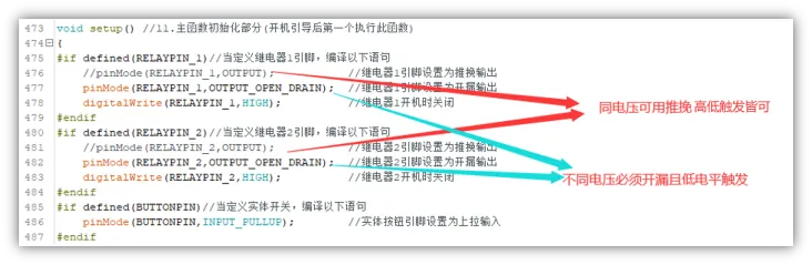 继电器类型不同需要修改初始化: