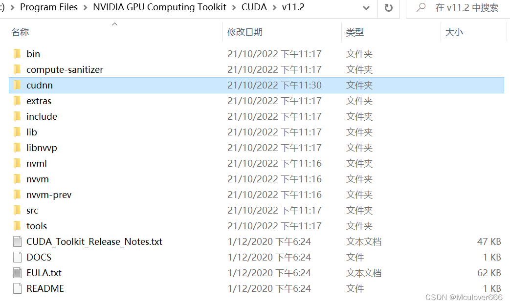 下载后解压,重命名为cudnn,复制到CUDA安装路径下,如图: