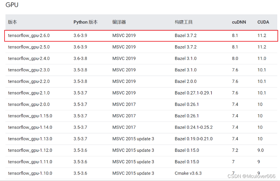 下面的参考图来自官网:https://tensorflow.google.cn/install/source_windows#gpu。