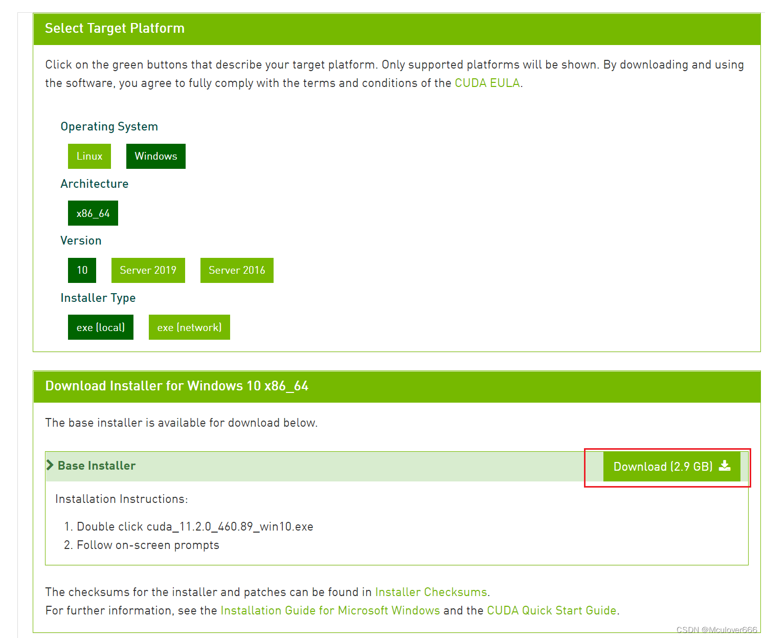 下载地址:https://developer.nvidia.com/cuda-11.2.0-download-archive
