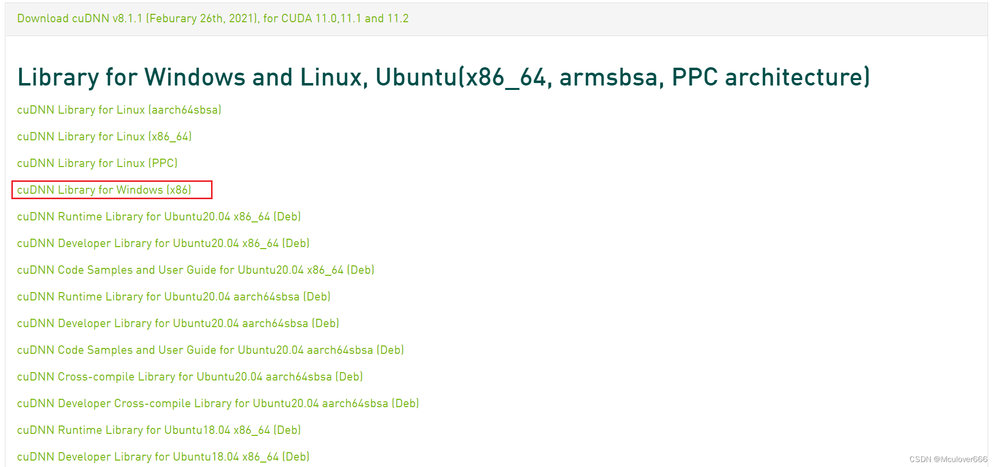 (3)安装cuDNN(Deep Neural Network library)(版本:cuDNN v8.1.1 (Feburary 26th, 2021), for CUDA 11.0,11.1 and 11.2)
