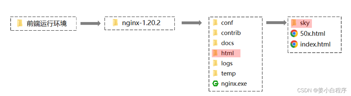 从资料中找到前端运行环境的nginx,移动到非中文目录下。