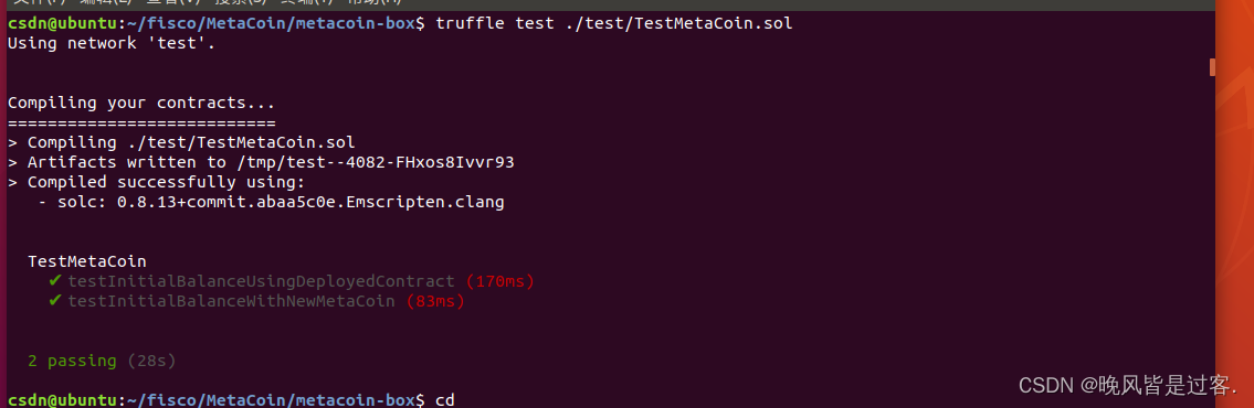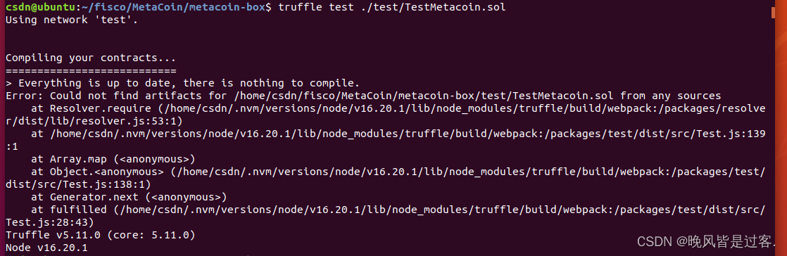 Error: Could not find artifacts for /home/csdn/fisco/MetaCoin/metacoin-box/test/TestMetacoin.sol from any sources