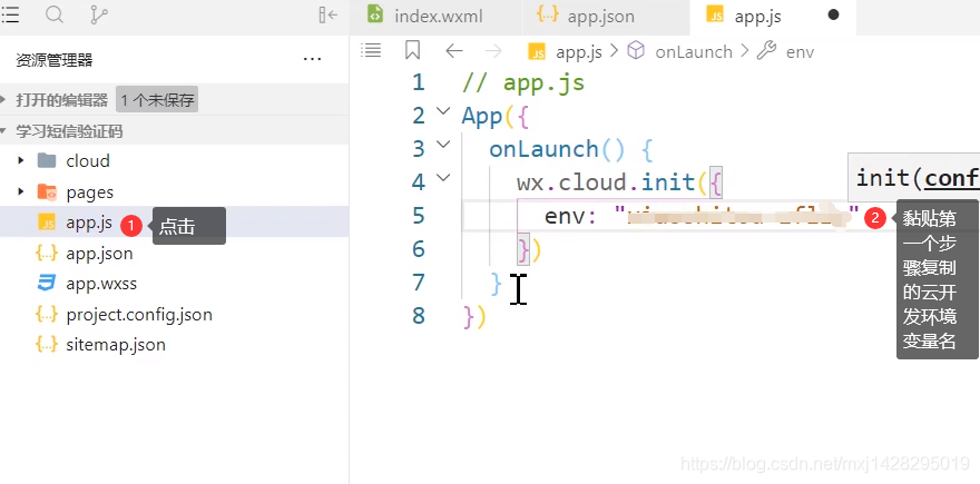 3.初始化云环境,在app.js,如下,