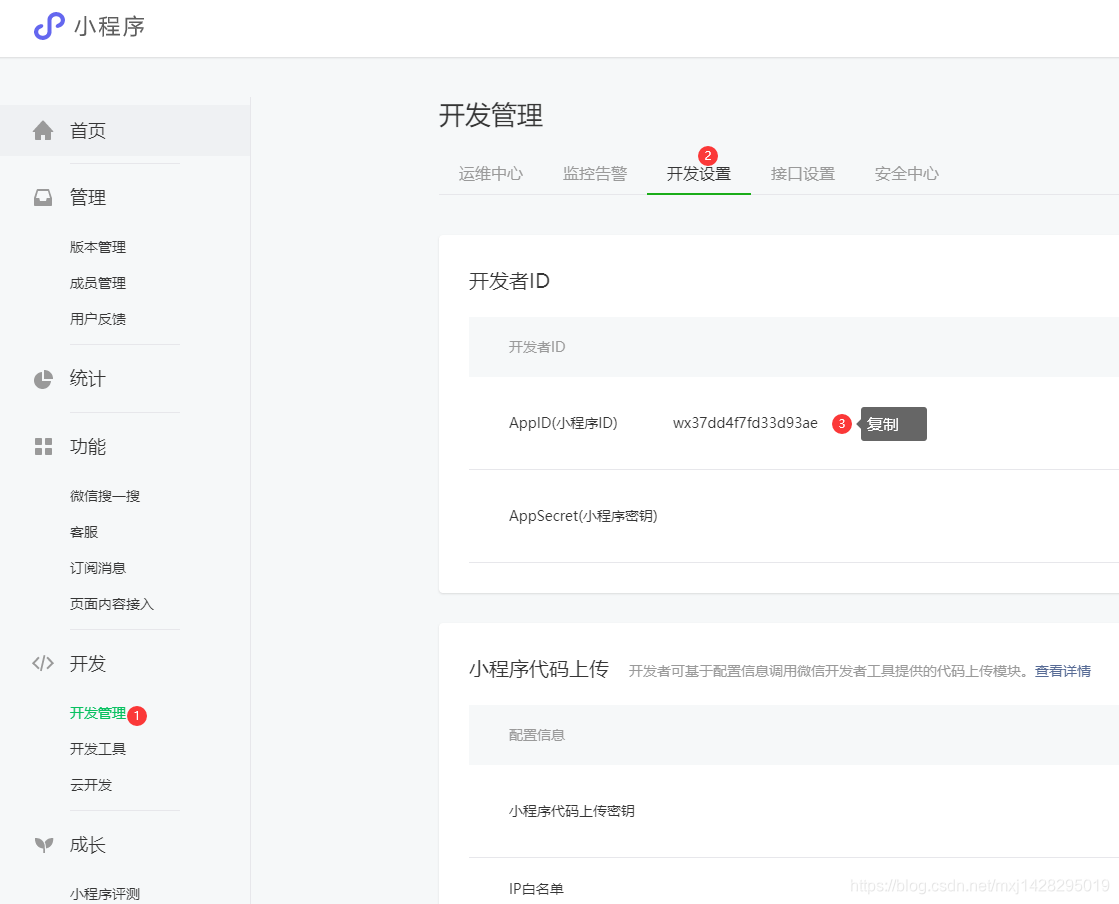 2.AppID账号的获取,如果要使用云开发,必须要有AppID,可以注册小程序账号,获取AppID