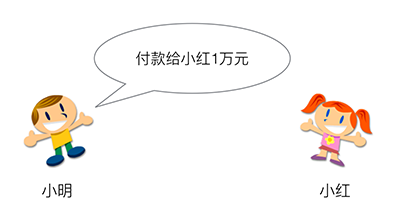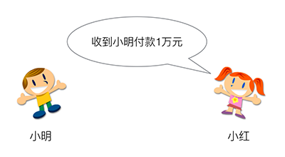 创建交易有两种方法:我们假设小明和小红希望达成一笔交易,一种创建交易的方法是小红声称小明给了他1万块钱,显然这是不可信的: