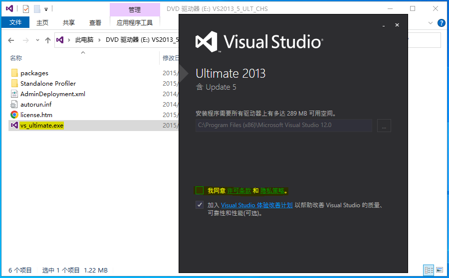 首先我们需要安装Visual Studio 2013这款功能强大的程序开发工具,在课件内请双击ISO文件并运行内部的vs_ultimate.exe安装包,Visual Studio的安装非常的简单,您只需要按照提示全部选择默认参数即可,根据机器配置不同可能需要等待一段时间;