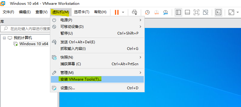 当一切安装就绪后我们需要在系统中安装VMware Tools工具,该组件在安装后可让虚拟机具备有拖拽上传文件的功能,且鼠标键盘将可以自由切换,该功能是我们必须要用到的;