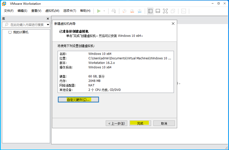 在硬件配置处,读者可根据自己电脑的配置灵活的选择,当自定义配置完成后,则虚拟机模板将被创建。